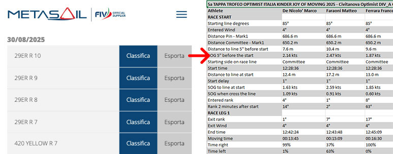 Approfitta delle statistiche di Metasail per identificare e analizzare i tuoi errori. Scopri da solo o con il tuo allenatore dove hai navigato meglio e confronta i dati con i tuoi avversari. Condividi le informazioni con il tuo allenatore ed i tuoi genitori inviando via Whatsapp il link della tua regata . Metasail ti permette di capire di più per crescere più velocemente.